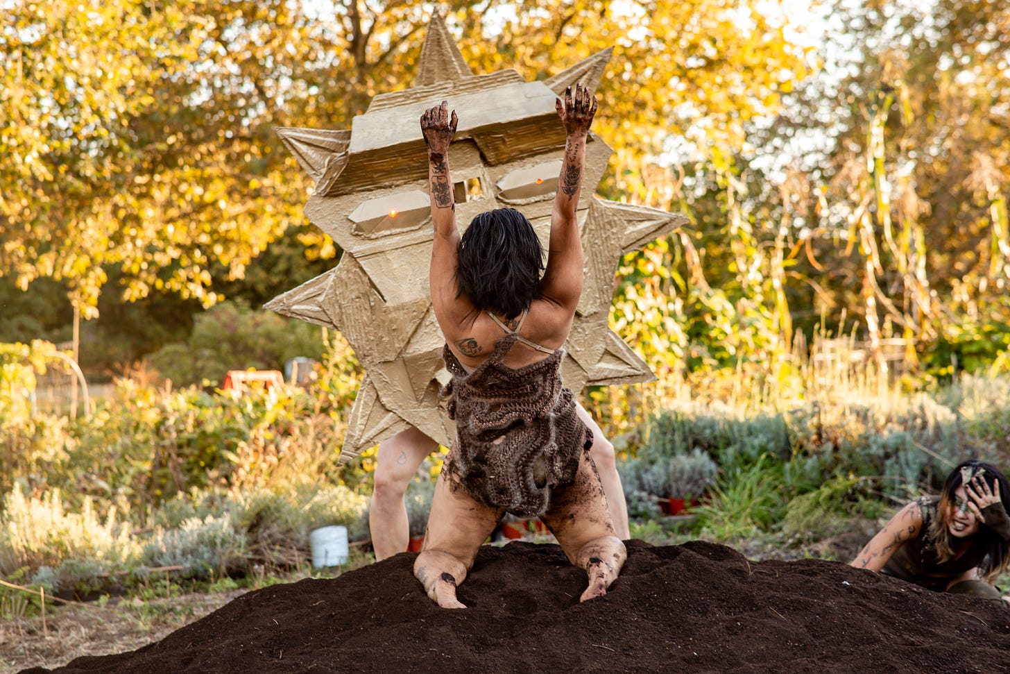 And of course, great stories and myths always flow beyond the bounds of their initial vessels and beg to be reimagined and retold. In that spirit, we offer a retelling of Alex’s Creation Myth, drawing on her script and photos from the performance and also telling the story anew, an invitation to your own mythic imagination.
